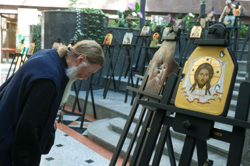 В МИД открылась выставка икон, написанных на пластинах бронежилетов